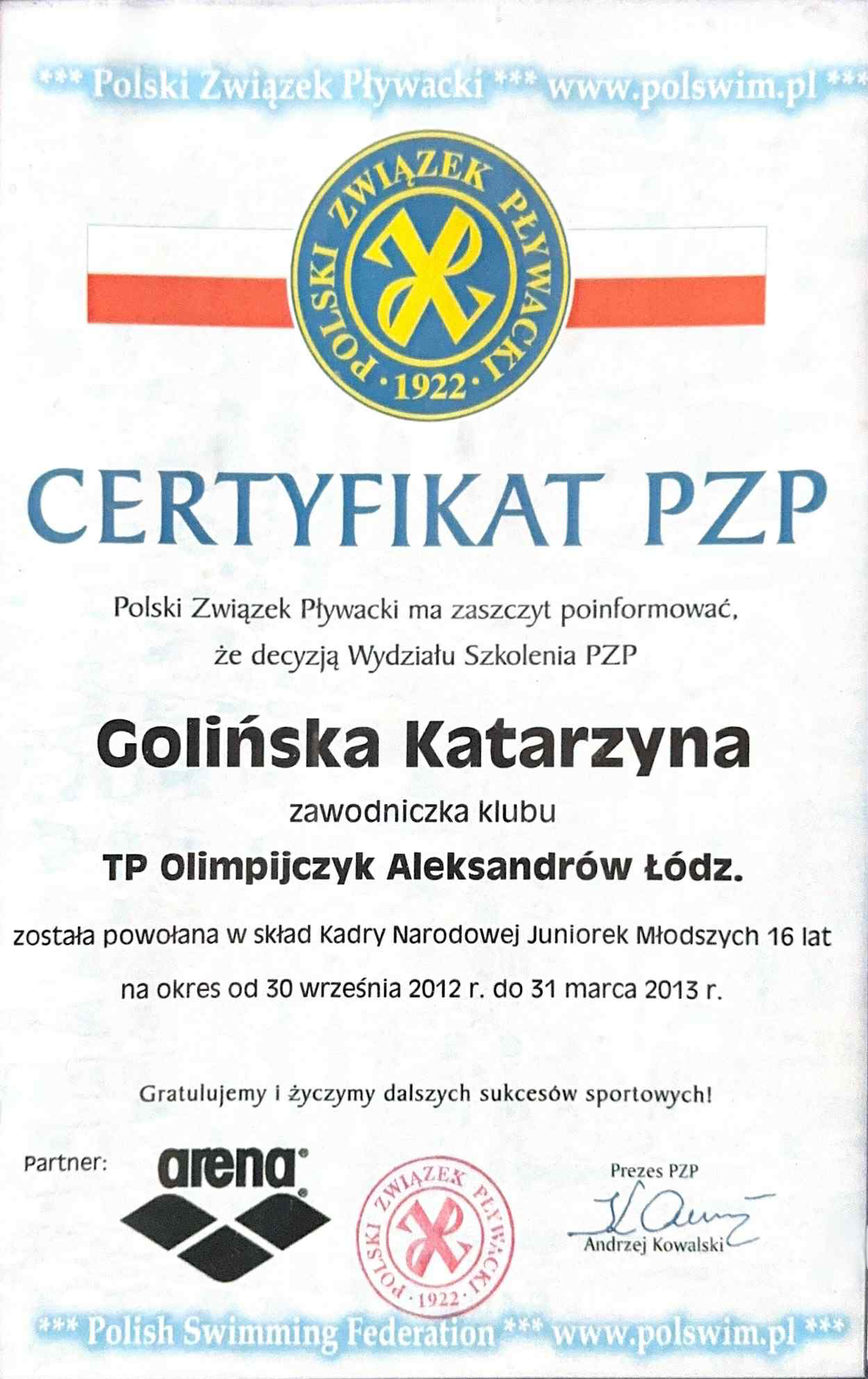 Członkini Kadry Narodowej Juniorów w pływaniu